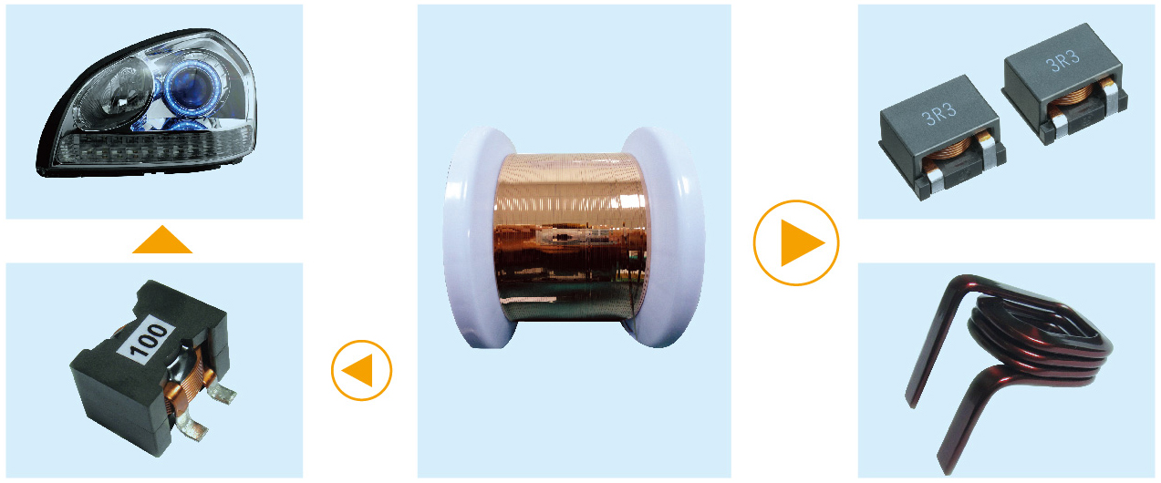 高功率小型驱动马达;电源变压器等扁平电感线圈;高保真立体声喇叭的音圈;MO光盘机线圈;